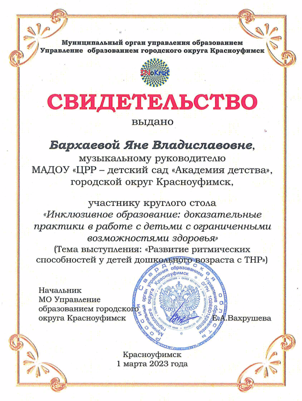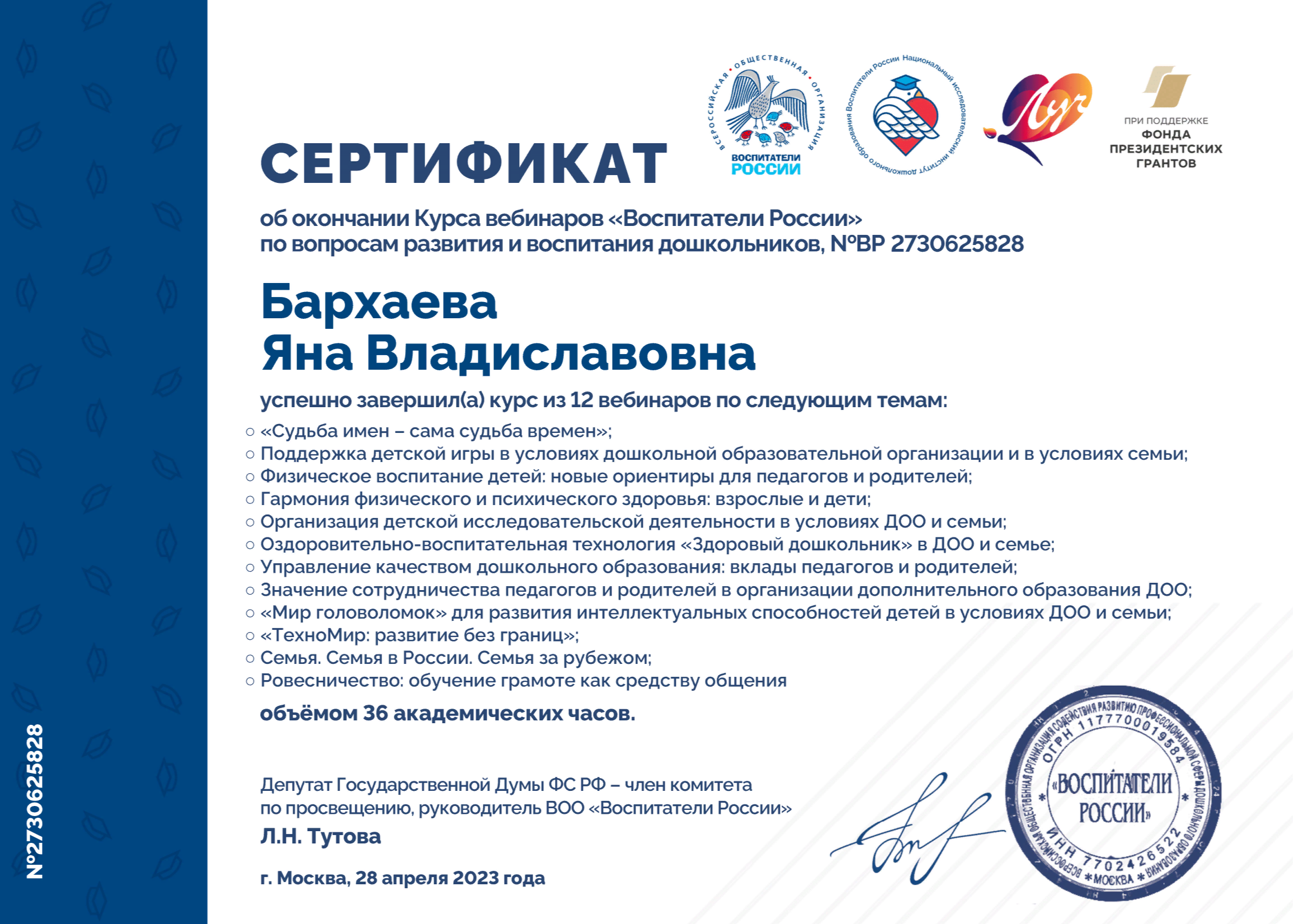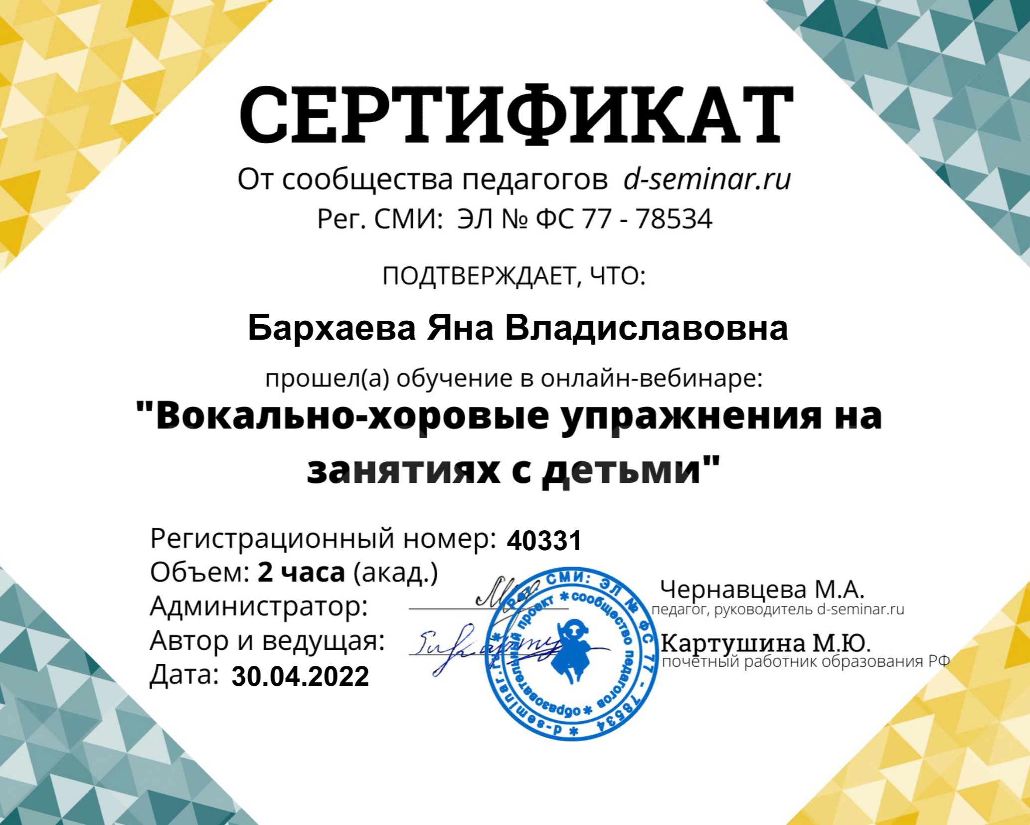 Сертификаты и свидетельства
