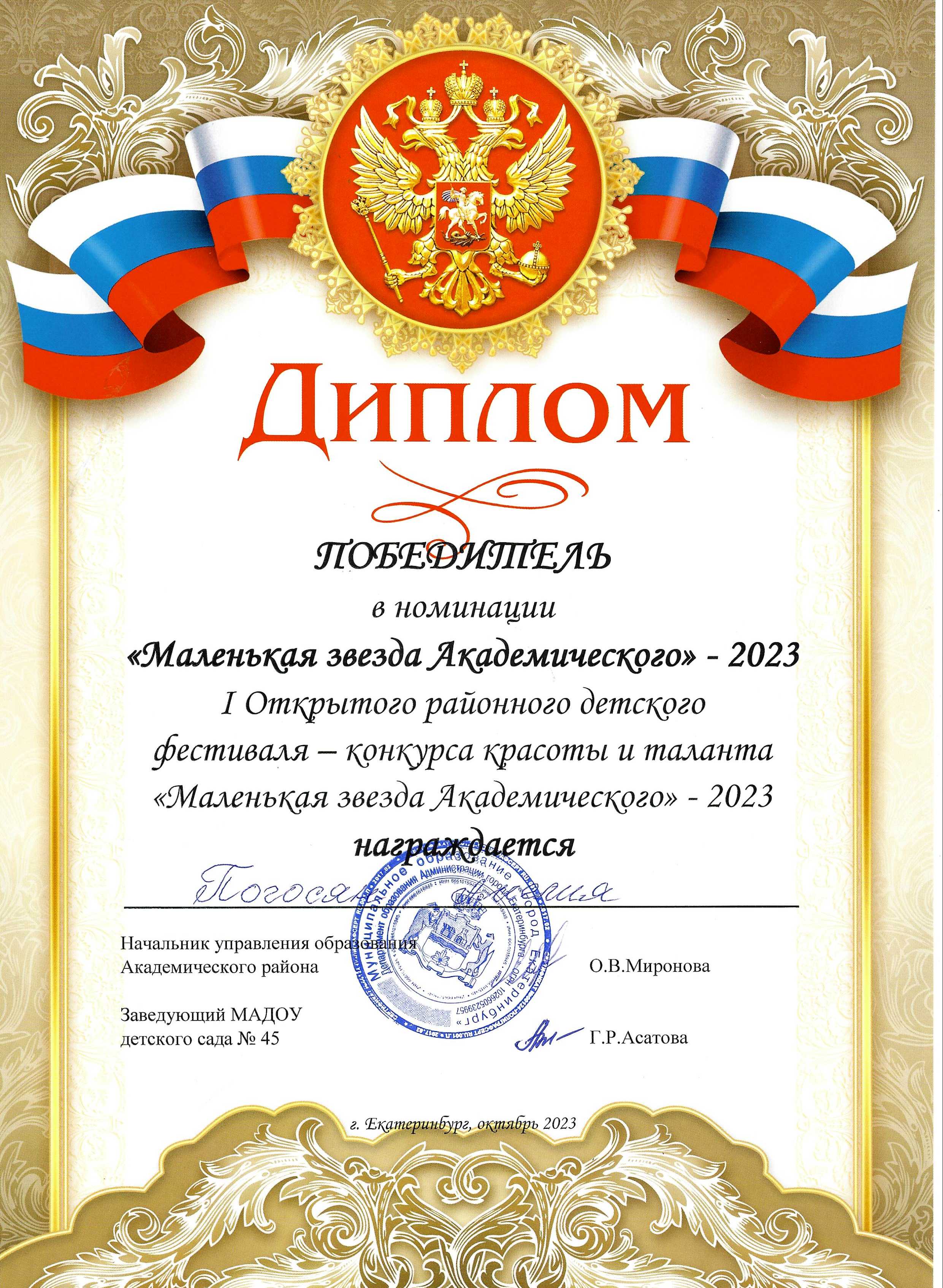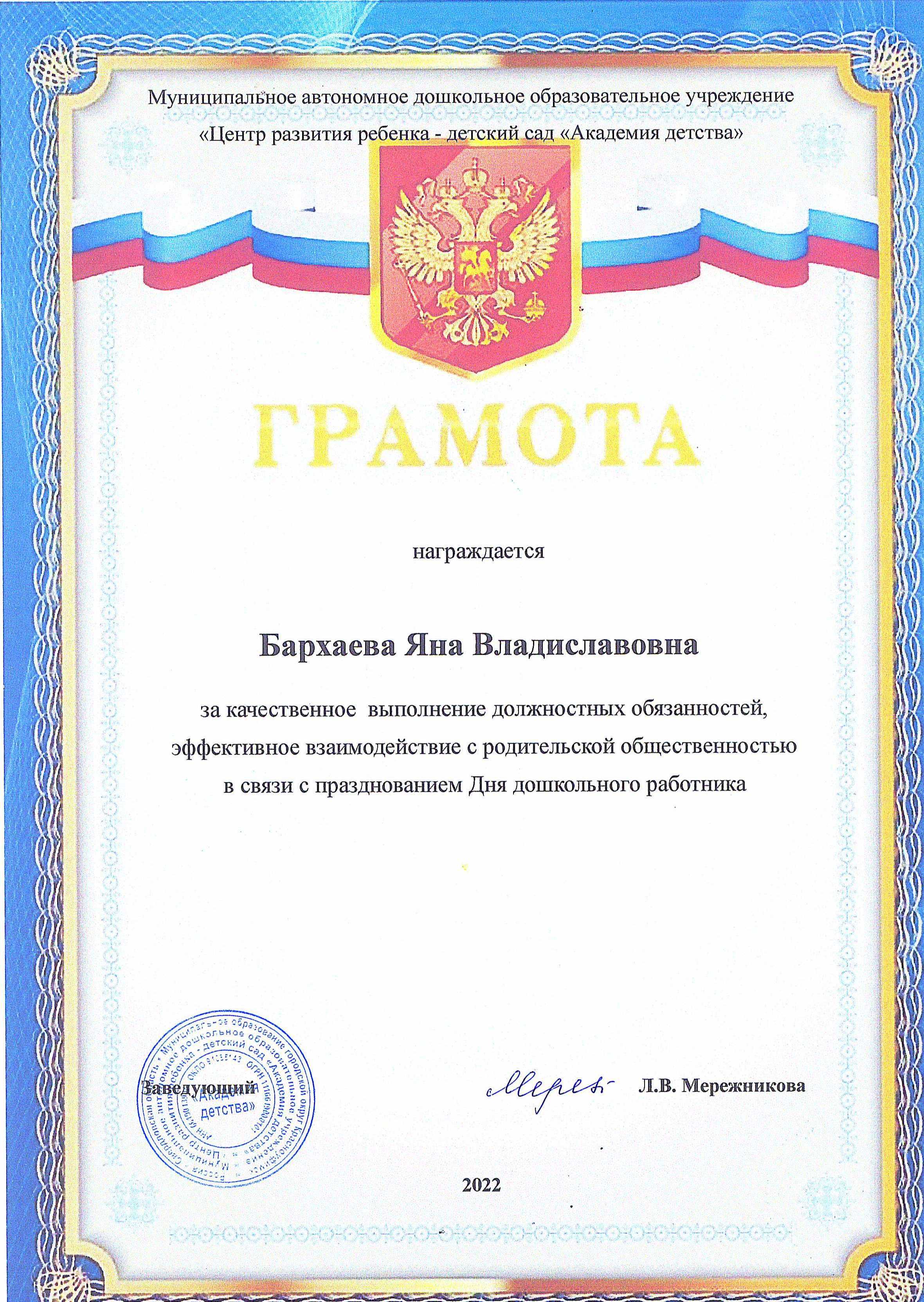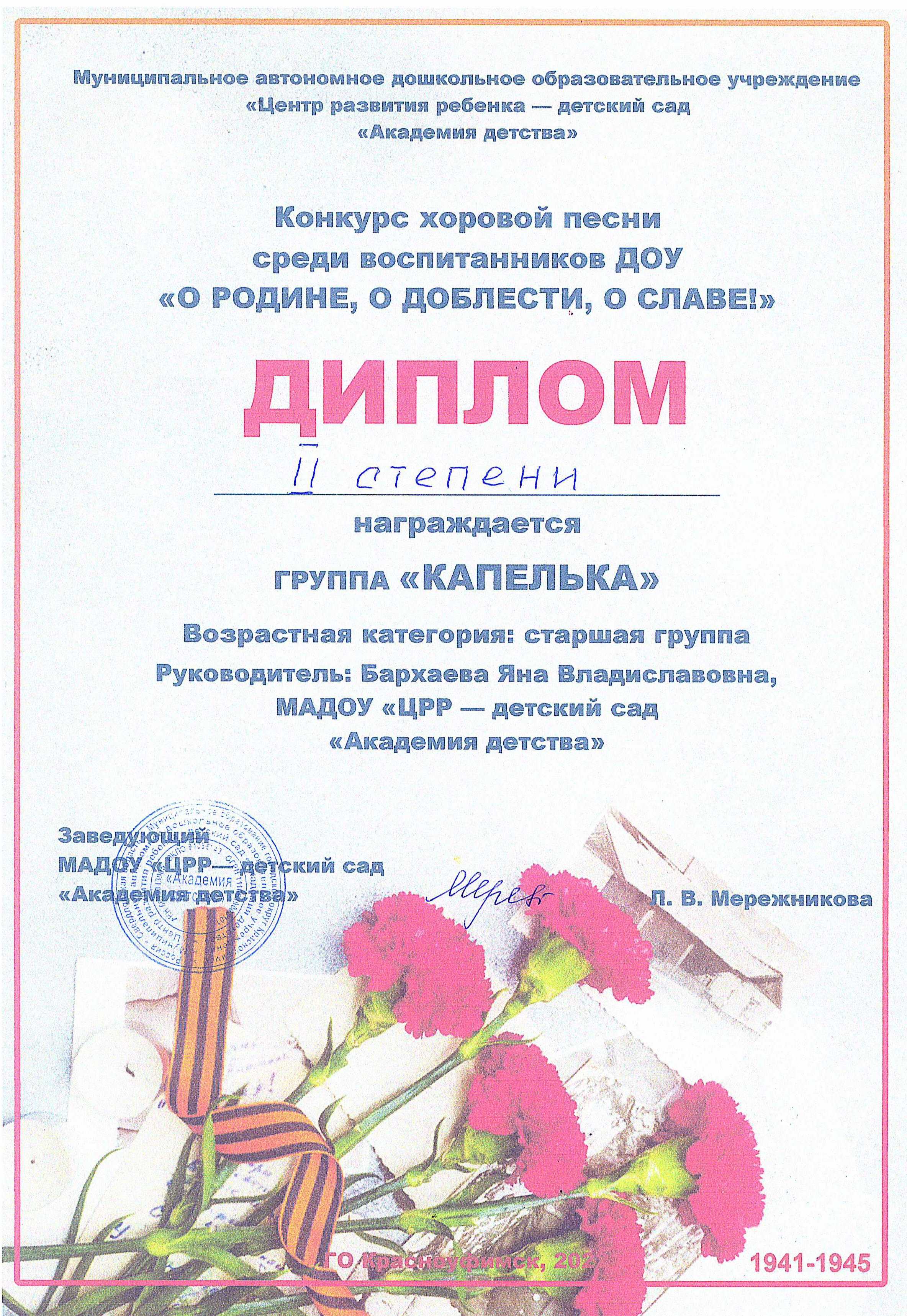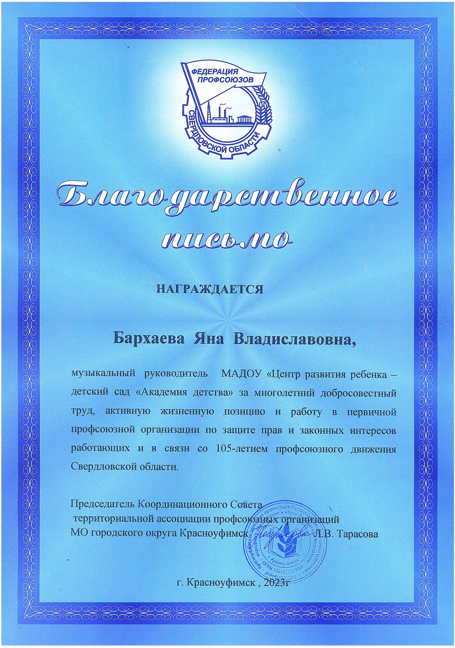 Дипломы и благодарственные письма