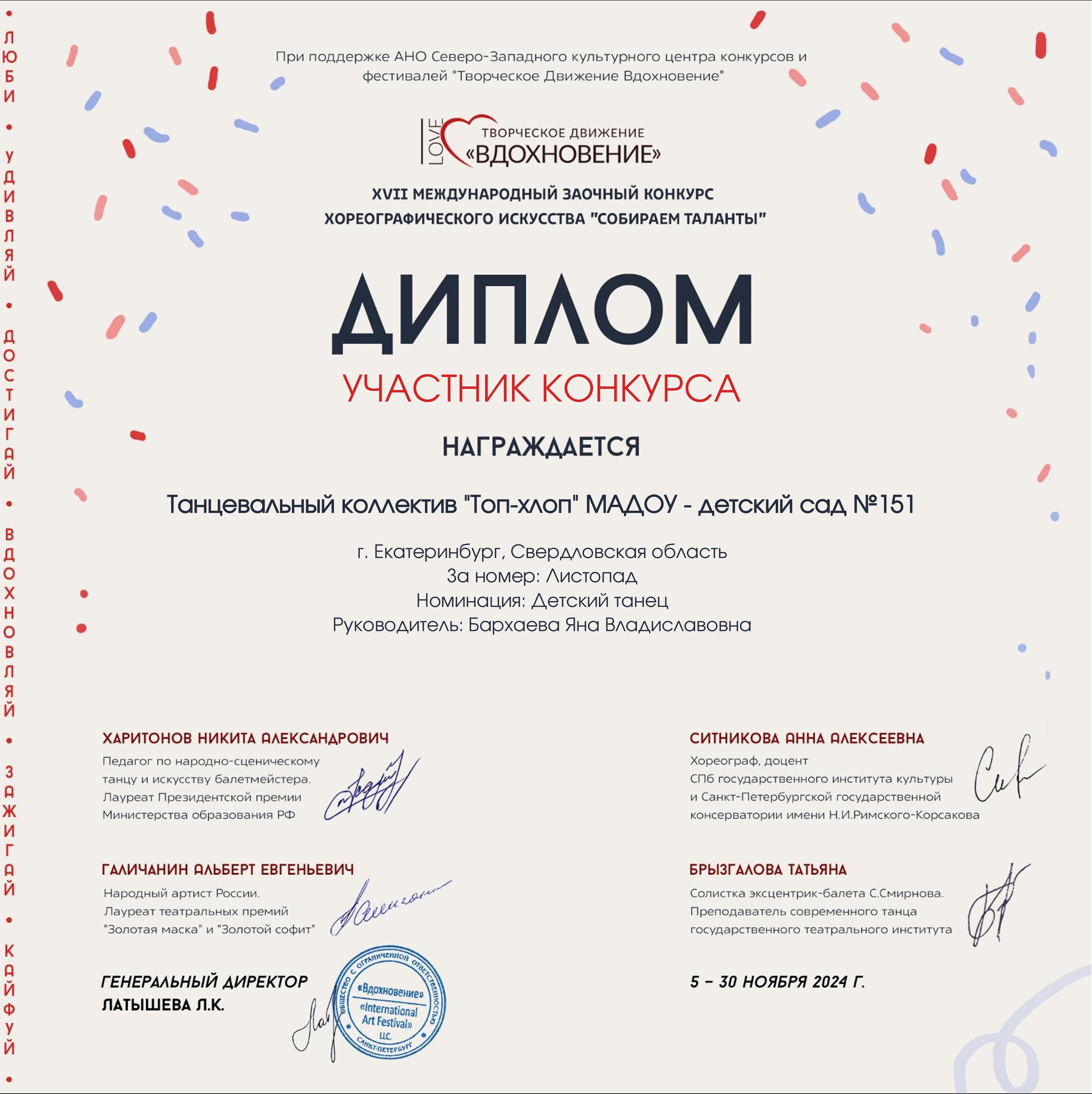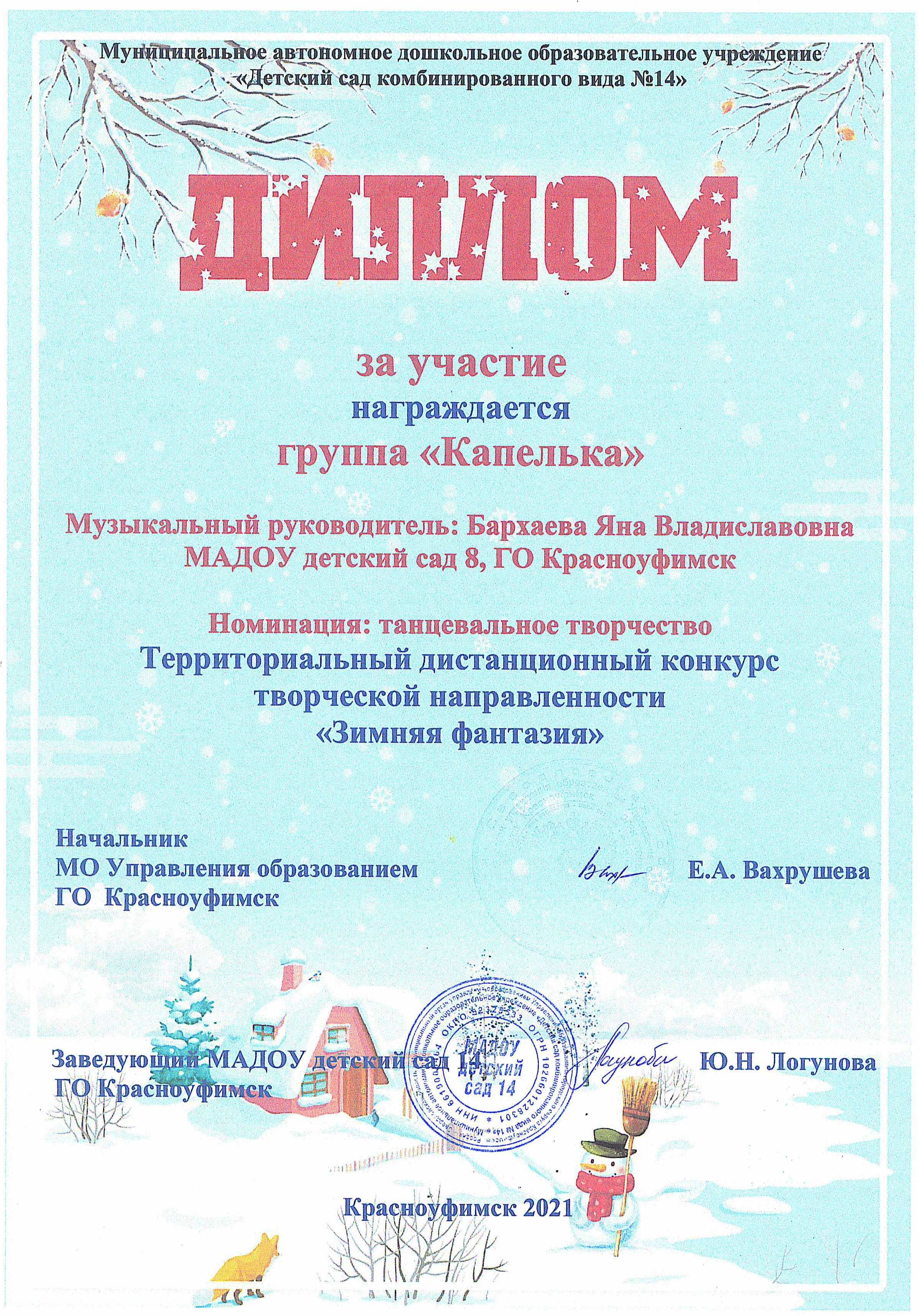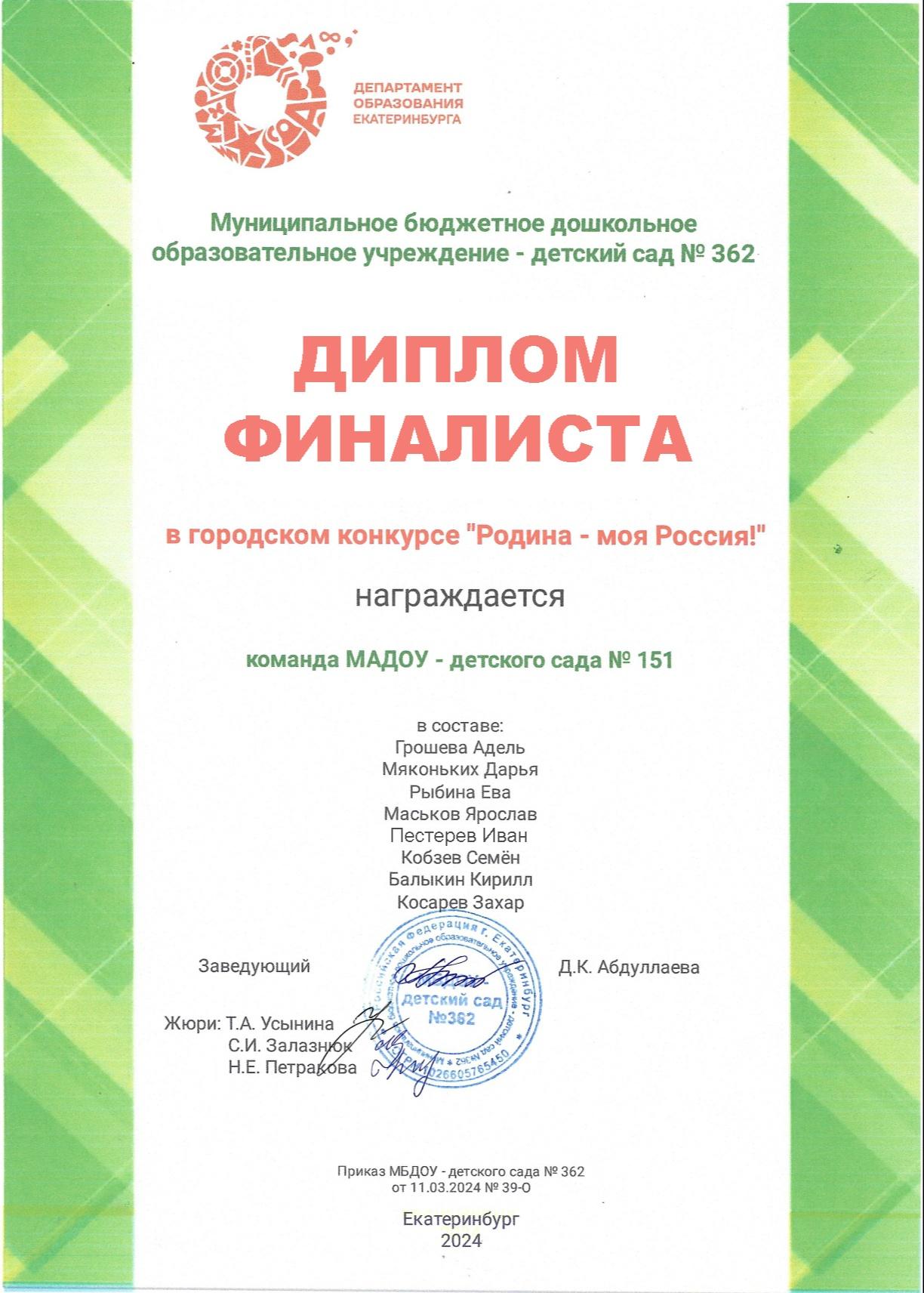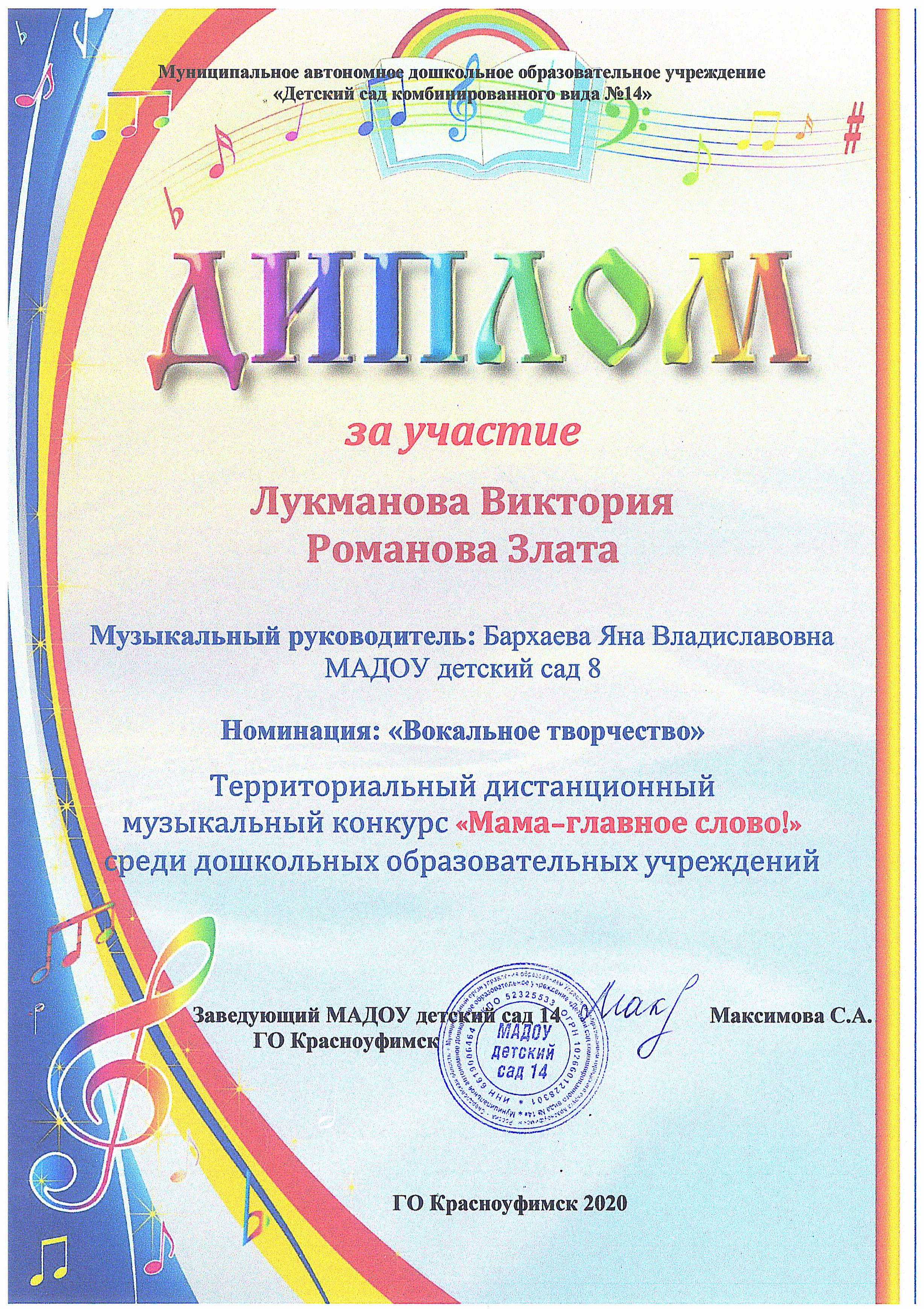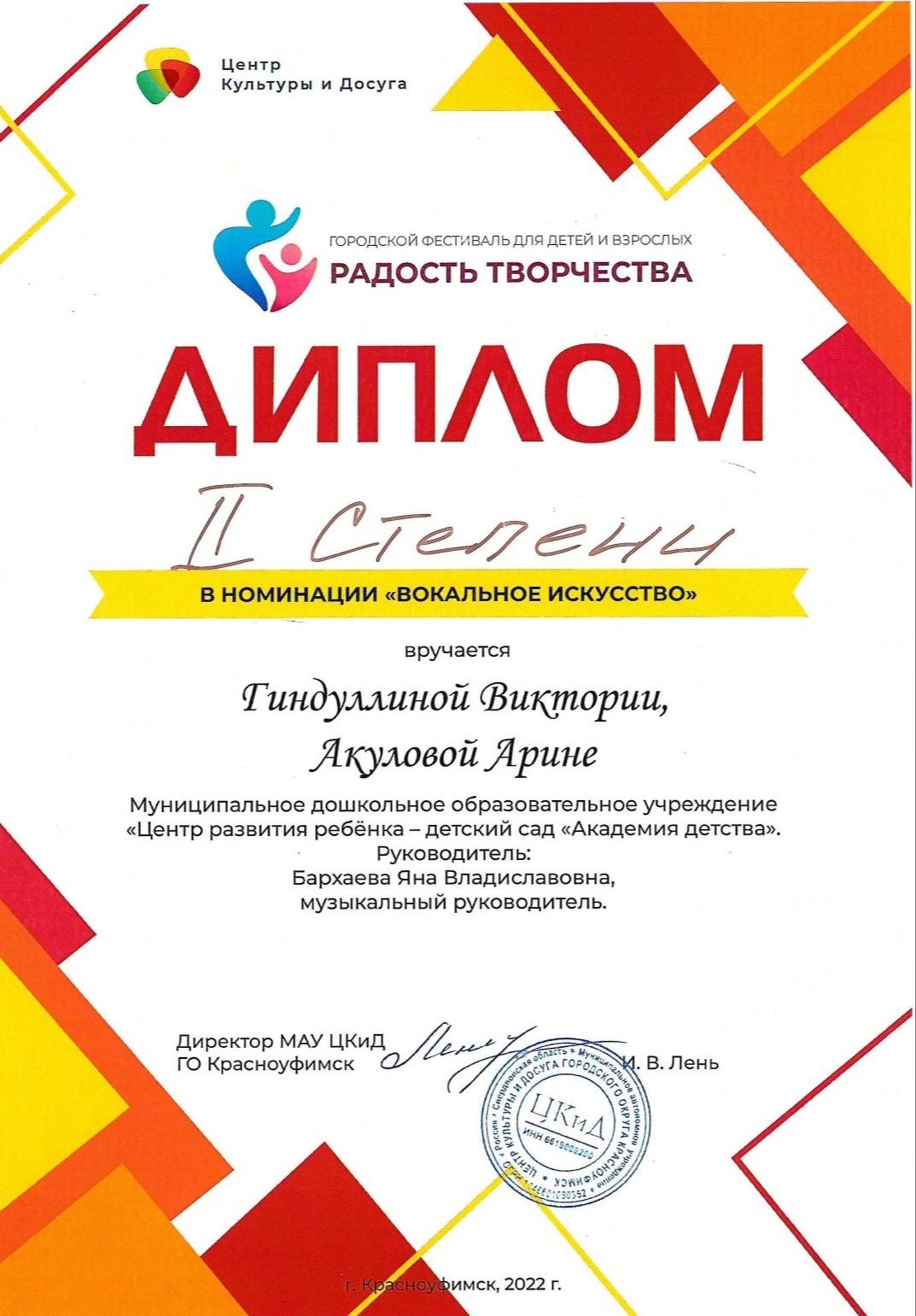 Дипломы и благодарственные письма